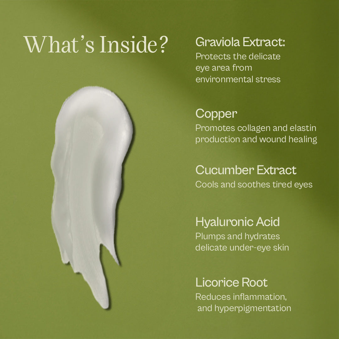 Water (Aqua), Glycerin, Cetearyl Alcohol, Cetearyl Olivate, Sorbitan Olivate, Shea Butter Glycerides, Squalane, Dipalmitoyl Hydroxyproline, Annona Muricata (Graviola) Fruit Extract, Copper Lysinate/ Prolinate, Copper Gluconate, Sodium Hyaluronate, Sodium Hyaluronate Crosspolymer, Glycyrrhiza Glabra (Licorice) Root Extract, Acmella Oleracea