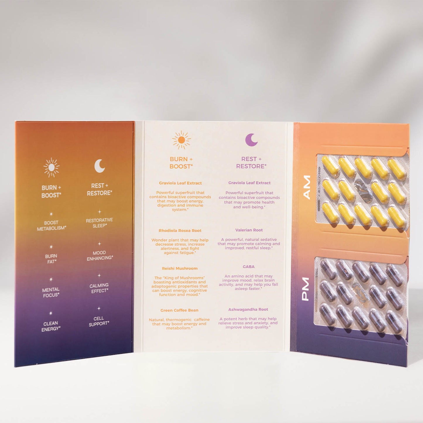 AM Boost + Burn features a synergistic blend of ingredients that have been used traditionally and proven to help support fat burning and weight management, including several botanicals, mushrooms and so much more.